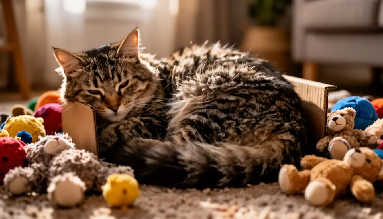 Комфортная поза для сна. В коробке кошка может свернуться клубочком — это естественная поза для отдыха. Кошкам нравятся коробки как удобное место для сна.